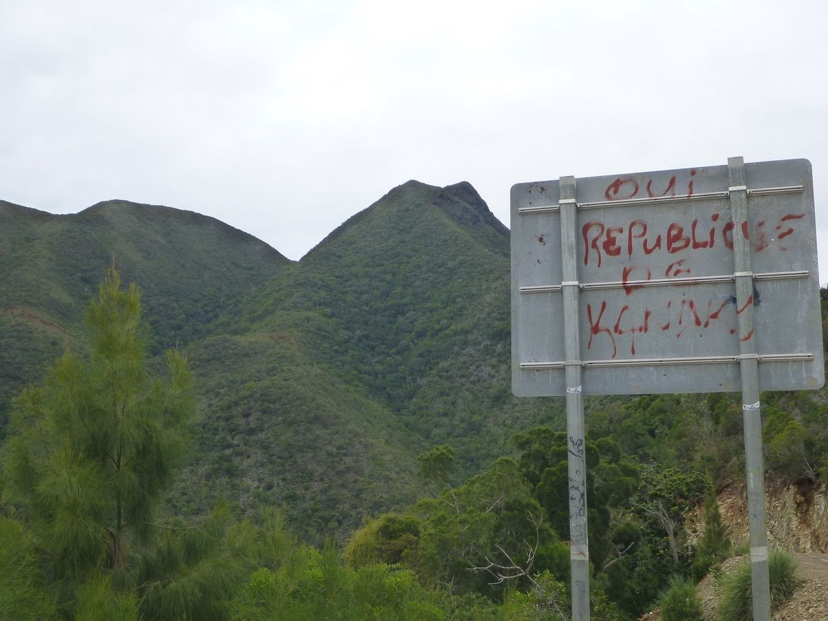 Après le col, la route continue en province nord vers Nakéty et Canala. Canala est une bourgade, une toute petite ville à la campagne, où chaque maison ou presque arbore le drapeau indépendantiste. Pour la deuxième fois de la journée, je prends un jeune kanak en auto-stop, qui me raconte un peu la vie en tribu et à Nouméa.