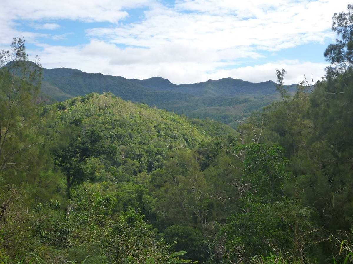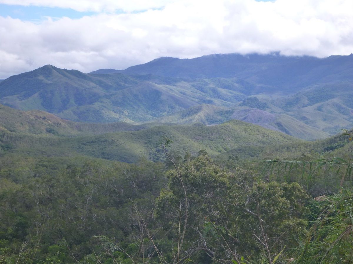Cinquième jour (26 juin), Nouméa – Poindimié, 306 km. Parti de Nouméa peu avant 9 heures, je gagne Boulouparis, la Foa, Sarraméa et le col Amieu par l’itinéraire emprunté en sens inverse le 15 juin. La montée au col est belle dans la montagne couverte de forêt. Après Sarraméa, la montagne est très peu peuplée et la circulation très réduite. Après le col, je bifurque à gauche vers le nord-ouest en direction de Kouaoua (en prenant à droite, je serais retourné à Canala, déjà visité sommairement). A l’approche de la côte est, la route traverse une chaîne de montagnes exploitée pour ses mines de nickel. Plus encore que dans la région de Canala, le spectacle de ces collines scarifiées – pour ne pas dire dévastées - à perte de vue est impressionnant. Kouaoua est une petite bourgade minière avec une « serpentine », un tapis roulant de 12 km qui transporte le minerais jusqu’au littoral.