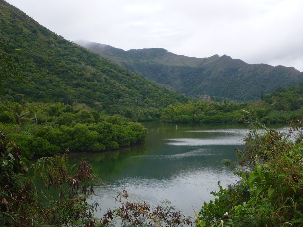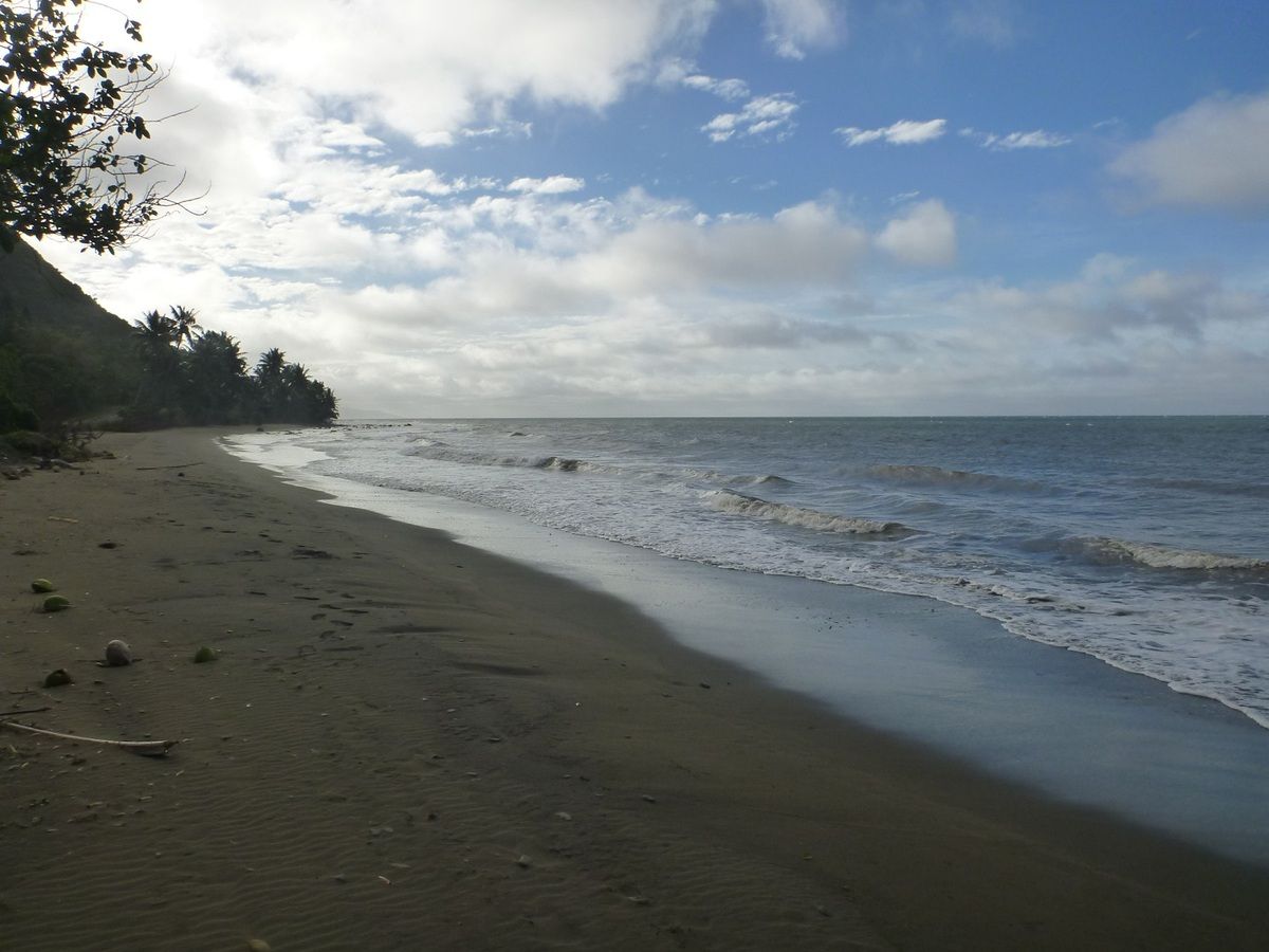 Je poursuis vers Huailou et Ponérihouen dans une région boisée et toujours très peu peuplée. Le route tantôt suit le littoral, tantôt passe dans les collines de l’intérieur. A Ponérihouen et un peu après, jolies vues sur les estuaires des rivières Tchamba et Neta enjambées par deux ponts. J’arrive à Poindimié à 17 heures. Il faut faire étape car la nuit est déjà proche. Un petit hôtel y pourvoit près de la plage de Tieti, au nord de la ville.